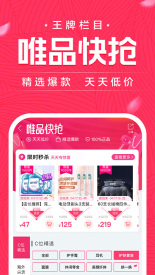 唯品会手机app免费下载是一款实用性非常高的购物应用软件,在唯品会手机app免费下载的商城界面中,会随时给用户们带来一系列优惠的商品,这些商品都会推送到首页界面,用户们只需要点击进来即可开始购物,用户们可以直接选择实惠的商品进行购买,结算商品的时候说不定还会获得额外的奖品。每一次购物都会让用户获得积分,这些购物积分累积到一定数量的时候,就可以在商城界面中去兑换相对积分的商品,并且还能够获得相对应的优惠券,给用户们带来一个非常舒适的购物体验。唯品会手机app免费下载可以给用户多种福利与优惠,赶紧点击进来体验最新版本的购物软件吧!