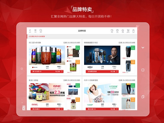 1、品牌特卖:汇聚全网热门品牌大特卖,每日开团抢不停!