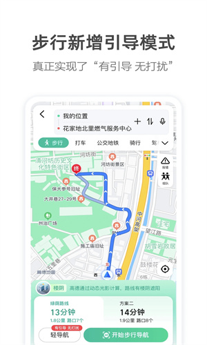 公交:高德地图APP换乘提醒,全程指引出行路线;