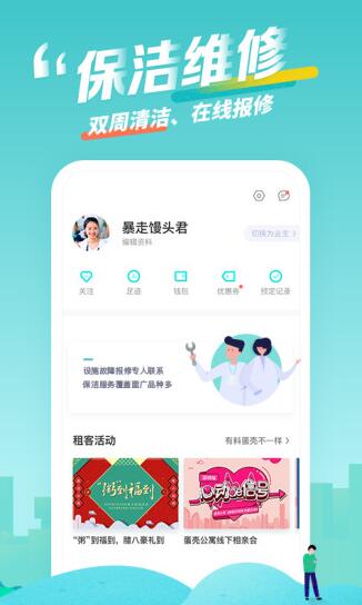 线上管家:在APP即可完成咨询、问题反馈、报修、预约保洁等服务;