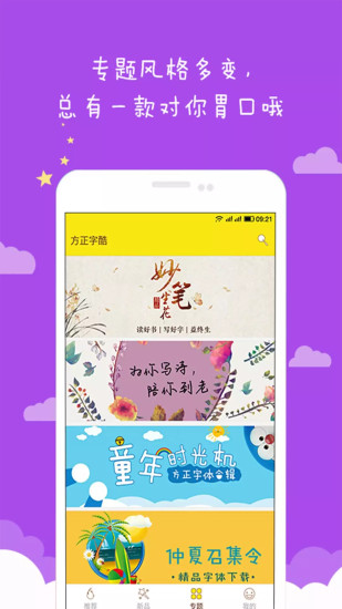 方正字酷免root版是一款拥有超多艺术字体库的手机字体更换软件,在这里用户可以根据自己的口味选择喜欢的字体进行更换。在方正字酷免root版中,有着清晰的本地字体列表,让用户对于管理字体方面更加的方便,只要是下载下来的字体都在这里清晰可见。方正字酷免root版现在有着大批字体来袭,精品字体、新品字体让用户应接不暇,而且有着不同的专题风格,用户可根据自己的口味选择一款对自己胃口的字体,如果你想知道字体的样式作者信息,在这款软件中也是可以清楚的看到的,包括字体名称、作者、大小、下载次数等信息。有需要的小伙伴,那就快来下载使用吧。