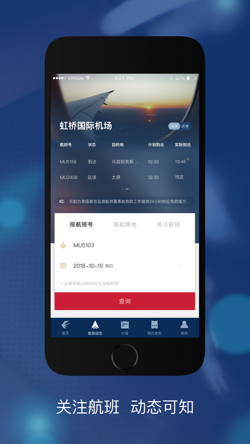 东方航空软件可以为你提供包括航班查询、机票动态、余票查询等非常多有关航空方面的信息。在东方航空这款软件里面你可以实时的查询你想要航班的动态,并且进行线上预定机票。感兴趣的话就来下载试试看吧。在这里你除了购买机票外你还可以找到有关出行相关的便捷服务,例如酒店预订、预约接机等。并且它还支持线上值机功能,你只需要在手机上简单的单击就可以完成,不用再跑去机场进行繁杂的值机操作了。如果你有例如小动物运输、服务犬、无照看儿童乘机等特殊需求的话它也可以满足你。