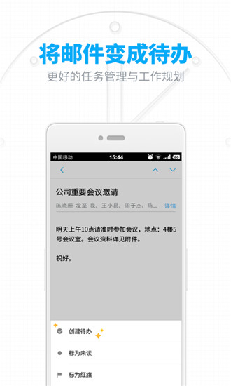 网易邮箱下载手机版是一款历经多年的邮箱软件,由网易公司出品的,是数亿的用户们都在使用的邮箱软件,有着非常多强大的功能,你可以在这里添加上许多其他品牌的邮箱,让你可以用这款软件来进行的对其他的邮箱进行接收发送邮件。在网易邮箱下载手机版上,不仅仅是可以查看各种各样的邮箱的邮件信息,还有着而许多黑科技的功能,比如有着机票和账单还有车票的信息,能够自动为你添加成待办事项,为你自动提醒,在这款软件还能够为你节省非常多的流量,有着智能收取的技术,为你压缩各种各样的文件,并且你可以用更少的流量来预览,有经常使用邮箱的小伙伴就快来使用网易邮箱下载手机版吧。