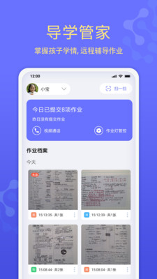 导学管家app这是一款孩子在线家教老师、家长的辅导好帮手的学习教育app,家长随时随地可以实时检查孩子的作业情况,不在家也能轻松辅导作业,突破距离的限制。查看作业档案,孩子拍照提交作业情况,家长查收检查作业质量,每一次的作业尽收眼底。掌握孩子学情,提供远程辅导作业,拉进孩子与家长的距离。作业灯在线管控,培养孩子自主学习,预防抄袭答案,设置禁止孩子查看答案选项。视频通话沟通,一键呼叫台灯,轻松远程辅导。各个科目的错题本归纳总结记录,随时随地可以复习巩固。