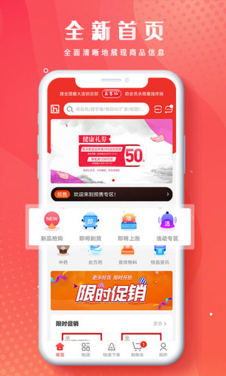 恒昌健康手机版由国际知名医药集团恒昌医药设计打造,是一家专注于各类药品的网上购物平台。软件中的药品均经过国家药监局严格认证审核,从正规渠道进货,用户可以放心下单购买。恒昌健康手机版支持用户随时查看药品快递物流,可以为用户实时更新快递的发货、位置信息。软件中拥有着品类齐全的正规药物产品,并且拥有着专业医师随时为您解答用药问题。恒昌健康手机版还可以为用户提供包含药店运营培训、医生咨询、家庭健康管理等多样化功能,在为用户提供买药服务的同时,不断地完善各项配套服务水平。
