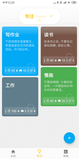 Doing++是一款致力于使用番茄工作法的模式为用户进行时间管理的应用APP。Doing++精心设置了多种实用的板块,涵盖了专注时长,任何颜色,编辑时间等内容,合理的把控时间,提高用户的专注力。Doing++界面设计比较文艺,操作也简单快捷,不管是学生党还是上班族都能使用。