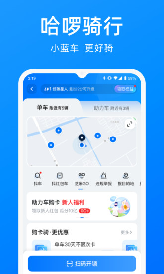 用车、还车轻松自由;使用无桩技术,关锁后自动完成计费。