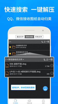 3、开始查看DWG图纸,有两种查看方式。第一种,搜索手机上的图纸: