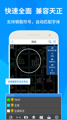 【CAD快速看图兼容天正全专业】,支持AutoCAD所有版本的DWG图纸。支持钢筋符号显示,图纸显示完整,无需安装字体。