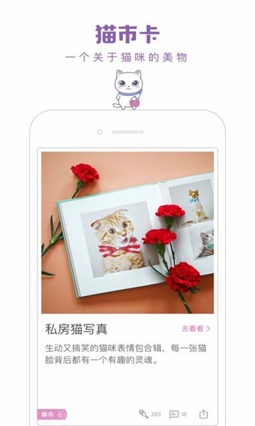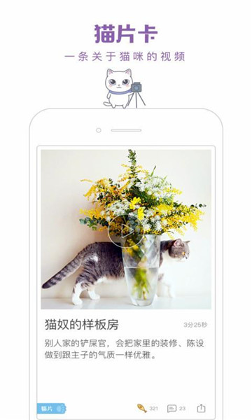 身边的猫奴真的是越来越多了,一日猫正是是一个展现猫咪的文艺生活的社交App,用来分享和记录自己猫咪的照片和小视频。在一日猫app猫咪的一生都有迹可循;你可以利用提醒来合理安排你的铲屎生活;你也可以在这里分享你的养猫趣事,与猫友互动交流养猫心得…加入好好养大家庭,养猫和吸猫都有趣而简单。养猫的过程中总会遇到些问题,在一日猫,有很多经验丰富的养猫达人可以帮助到你。一日猫会有一些官方精选的热门话题,可以与猫友们一起讨论,这里都是一群和你一样喜欢猫咪的人。
