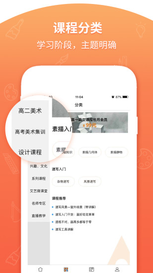 艾艺在线优享版是一款专业的美术在线学习平台软件,不管你是艺考生还是单纯喜欢画画的人在这里都可以体验到最专业的课程,让你学习绘画的道路更加轻松,轻松学会画画提高自己的画技。艾艺在线优享版这里有精选优质课程在线等你来观看,更有高分作品在这里为你F步骤重现,让你一步一步学习,深入了解如何在考试之中获得更高的分数。更有专业名师在线授课,直播教学,让你的画画道路不再是一件困难的事情。轻松绘画美院专业老师在线实时为你答疑解惑。专业老师指导美术生联考校考和学画过程中遇到的问题,让学画和艺考更简单。不管你是喜欢素描,速写,色彩,油画,国画等绘画在这里你都可以学到,在这里满足你的想画画的需求。还在等什么快来下载为你的绘画技艺做进一步提升吧。