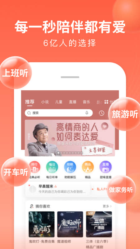 喜马拉雅极速版app是款精简实用的优质听书软件。该软件是经过工程师们精细优化后,现在的运行体积更小,给你的体验更加流畅了。喜马拉雅极速版app提供的更多的免费优质的各色音频视听节目。在该软件你能体验到包括文学巨作,儿童的睡前故事,充满趣味的相声小品段子等,你期盼的热门小说等你免费感受了。喜马拉雅极速版app更加的轻便,所以也更加的省流量,现在软件基本上是全场的资源都是完全完整的免费提供了。在喜马拉雅极速版app让你感受身临其境的全新阅读体验。