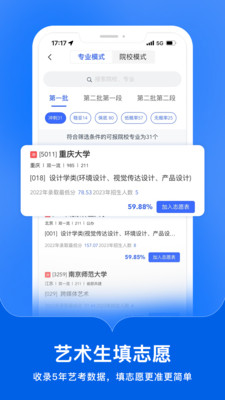 艺术升会智能的为用户们分析志愿填报内容,努力让每一位考生都能考生理想大学。