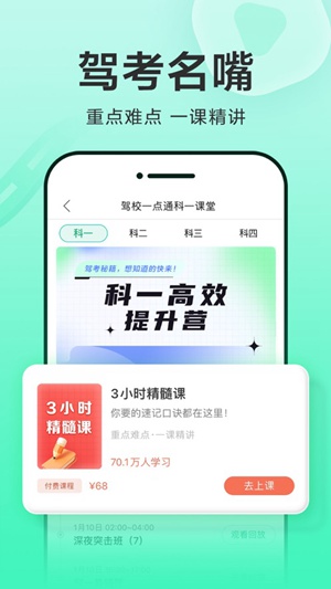 驾校一点通2022最新版免费下载是款为驾校学员准备的服务软件,驾校一点通从科一到科四的题目注意事项应有尽有,为保证用户使用软件通过考试,科一,科四考试的题库数量更是数千道,都配有题目解析和知识点,让用户错的明白并加以学习不懂的知识,刷完不怕考不过,就怕用户刷不完,随着题目的每年变动,题库也每年都会变动,软件还会精选题目让用户练,让用户事半功倍,驾校一点通还拥有众多视频供用户学习,科二和科三中各种需要操作注意的地方、怎么操作和控制油门、方向盘的心得,直接一网打尽,配合用户在驾校的日常练习,在考试道路中势如破竹,一口气通过科二科三,从此学车简简单单。