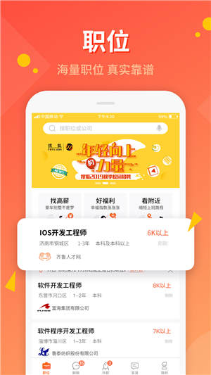 齐鲁人才网app手机版内拥有着非常丰富的高薪岗位资源,覆盖互联网,餐饮,广告,金融等全方位行业岗位内容。软件专为山东省人民设计打造,是一家非常靠谱的在线求职平台。齐鲁人才网app手机版面向山东16个地市进行全面开放,为您带来最为全面且优质的岗位就业选择。平台能够支持用户与企业hr进行在线的聊天沟通,就岗位薪资及工作要求等具体细节进行详细的在线洽谈。齐鲁人才网app手机版每日都会更新各种不同的优质岗位信息,并会根据用户的需求提供相应的岗位内容推荐。平台能够给予用户最为广阔的就业机会,在山东省地区的招聘市场上有着极高的影响力。