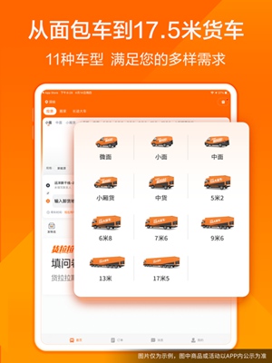 够全!五大车型,大货车车型:6米8、7米6、9米6大货车开通。