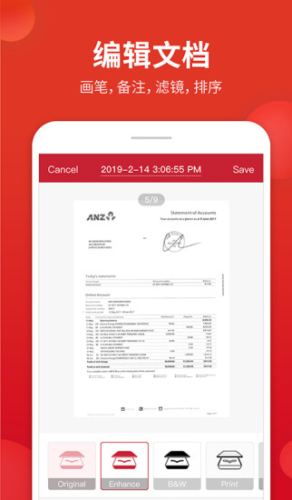 3、专业滤镜效果:口袋扫描仪app配备了多种滤镜模式,可以根据文档的不同进行选择锐化、增强、黑白等等;