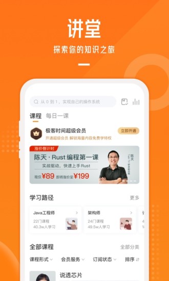 极客时间app安卓版是一款让学习成为习惯的学习软件。极客时间app安卓版这款软件专为互联人打造,拥有非常丰富的数字化学习教材等你来获取,汇聚了超多互联网行业大咖,为用户提供了非常优质的课程内容,用户可以在这里轻松学习。