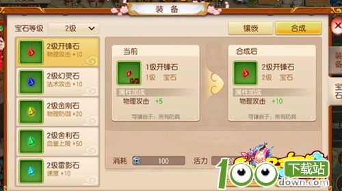 同种类同等级的宝石,集齐3个可在宝石合成界面合成更高级的宝石。