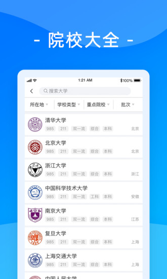 报考大学app是一款高考生必备的志愿填报工具,帮助所有家长和考生合理高效进行志愿填报,报考大学app在最短的时间内不浪费每一分,让用户得到最佳的填报效果。志愿填写是一件人生中一个非常重要的选择,那么这样的大选择一定是要三思而后行。报考大学app是你填报志愿的优秀军事,凭借出色的大数据分析能力为你智能匹配合适的大学,所有相关信息全部为你一网打尽,只需一个软件,就可以熟知所有的事项,为你的报考提供便利。报考大学app从大学专业选择着手,为你精确计算所选择大学的录取概率,还有专家1对1的分析指导,任何疑问都帮你轻松解答。模拟填报志愿,正式填报不再迷茫。报考大学app与时俱进的高考志愿相关话题互动等你来参与,快来下载试试吧。