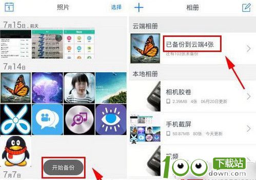 第三步、提示【开始备份】最后在【相册】面板中可以看到备份的相片即可。