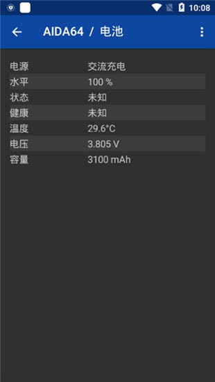 1、电池电量信息、温度检测等都可以用AIDA64手机版查看;