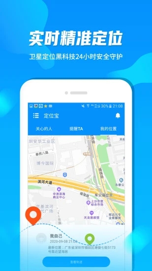 3.手机上需要开通网络,软件采用特别设计的算法,耗电量和网络流量均很低。如果需要更高的定位精度,请开启GPS卫星定位。