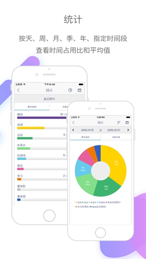 3、强大的统计,以饼图和柱图等多种方式分析时间占用比。