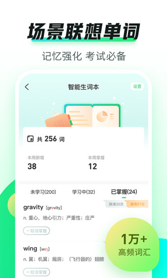 【智能生词本】覆盖学习生涯1万+高频单词,通过场景联想单词,加深词汇记忆,记录生词本快速背单词!