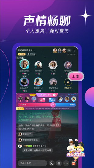 2、语音房间:多人在房间里一起语音群聊,在这里认识更多有趣的朋友吧。