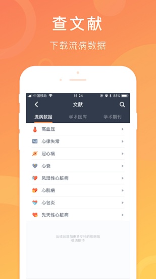 无论你是医学生,要做课题研究,还是治病医生,要了解药品用法、学习治疗方法等进行自我提升,这款医口袋app都能帮助到你。医口袋app可以说是一款医护人员的临床诊疗助手,汇集海量医学文献,可供用户在线搜索查询。还有临床数据、病流数据等,可以在医口袋app上一键获取,方便快捷。医口袋app还上线了云学院,可供同行之间的切磋交流,拓展知识。