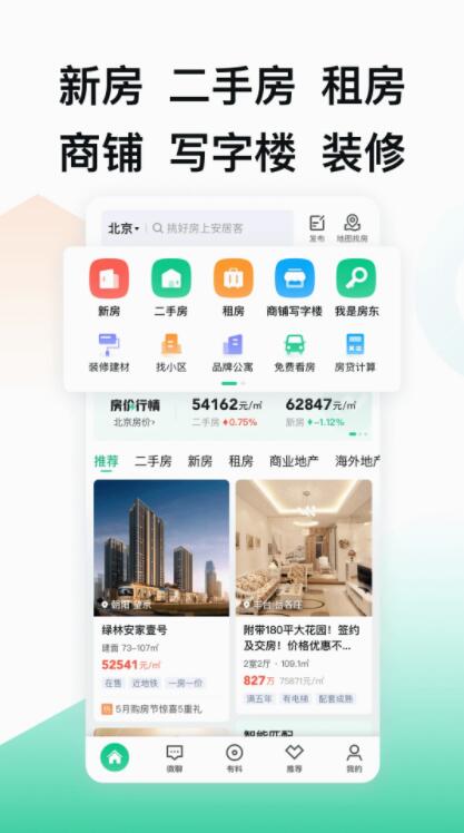 *找二手房新房租房,买房产查房价卖房租售商铺写字楼的专业房产应用