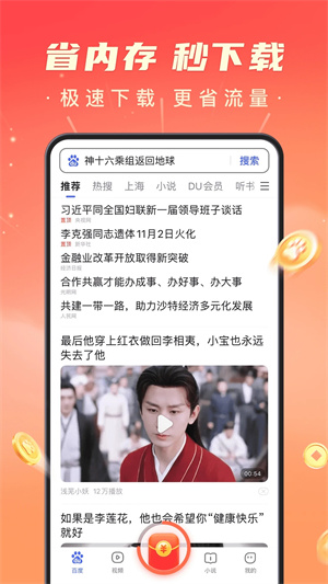 百度极速版app下载官方免费下载这是一款占用内存更小,但是功能一样,都还是能够让大家赚钱的资讯阅读平台,百度极速版app下载官方免费下载上允许大家在这进行各种各样的一些资讯的搜索,真的各种的一些网页,都能够在这加载出来的,大家都能欣赏到这里超多的一些资源,反正这里所包含的内容领域非常的广泛,大家不管想看一些什么类型的资讯,都是没有什么太大的问题,各种各样的一些最新最热门的资讯,这里都能够第一时间推送给大家阅读,真的各种的一些小说,漫画或者是视频等,统统都能够搜索查看得到的,平台上都还是允许你们下载到本地,在没有网络的时候,一样都能够下载这一些视频,对于一些自己常常浏览的网页,都是可以选择添加到收藏夹,方便大家之后能够反复的上网,在这里看的资讯越多,赚的钱也就是越多的。