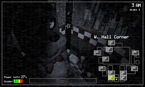 3、通过闭路监视器来观察玩具熊们的活动路线,控制更多的音乐和来限制玩具熊的活动。