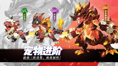 1、萌宠升级进阶,超强三阶进化,体验极致属性。