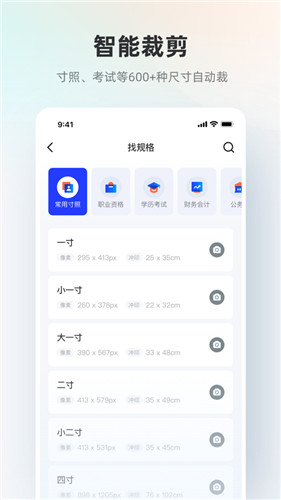 智能证件照最新版是一款功能非常齐全的手机拍照软件,你还在浪费时间到照相馆拍证件照吗,是不是感觉去一趟都要花上不少的时间,在如今快节奏的办公生活中根本无法抽出空隙时间,没有关系,这款软件都能够帮助到你。该软件爱你操作简单,可以借助内置相机功能进行拍照,有需要的可以对照片进行适当的美颜修图,然后选择自己合适的底色以及大小尺寸,这样就能快速制作出令你满足的证件照片。各种照片模板上也提供了非常多样的选择,无论你是要用在证书上、个人简历上还是出入境护照上都能适用,直接套用模板就行了,非常方便。感觉好用的话就下载体验一下吧。