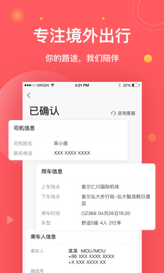 1、接送机预约,输入航班号,选择目的地,选择乘坐人数就可以直接预约服务。