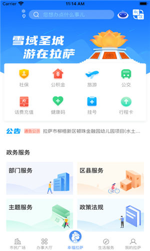 幸福拉萨app最新版是一个汇集了多领域服务的便民生活服务app,内含政务办事、交通出行、教育医疗、社会保障等多领域的功能,未来还将不断上新更多服务,旨在一站式解决老百姓的各种办事问题。幸福拉萨app最新版中融合了诸多不同政府部门的办事力量,可以让大家很轻松的在线办理各种政务事务。并且在这类大家可以自定义软件的功能排版,将自己常用的一些服务放置在显眼的位置。幸福拉萨app最新版中还有着很多民生及政务方面的新闻报道,可以让老百姓更好的了解本地热闻,对城市发展有着更好的了解。