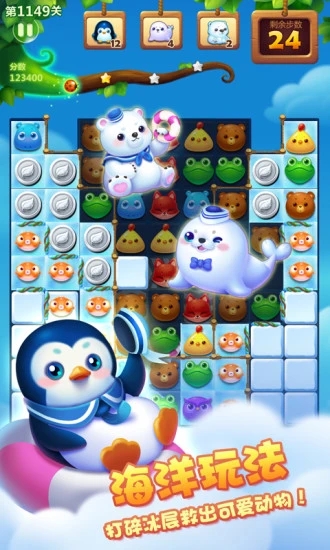 滑动手指让三个及以上的同色小动物横竖相连即可消除,完成每关的指定消除目标即可过关!