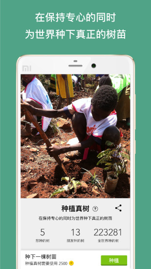 2.在手机上种树的同时,也会在世界某处真正的种下一颗大树。