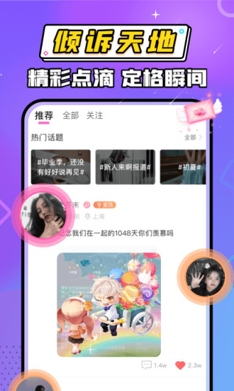 窝窝语音ios这是一款专门让那些喜欢用语音进行聊天的用户在线的进行聊天交友的社交软件,现在的年轻人再也不像以前那样的传统了,思想特别的开放,其实这有弊有利,当然每个人的看法不同,也没有必要进行深究,在这里你可以使用它进行十分愉快的在线聊天,这里有着超级多声音甜美的小姐姐,你可以非常顺利的和她们相识。在窝窝语音ios这里它能够使你走出单身从此不再自己一个人孤零零的面对生活,在这里它有着非常多交友的模式,你可以在这里进行牵手告白,脱单就是如此的轻松,而且在这里你还可以进行游戏的玩耍,这里有着非常多社交游戏让你进行玩耍,能够很好的培养你们彼此之间的感情。除此之外这里还有专门的cp空间,在这里它能够让你记录你们的甜甜的爱情。喜欢窝窝语音ios的小伙伴们快快点击下载体验吧。
