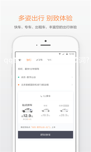 3、快车:滴滴平台采用高效匹配策略,为旅客提供经济快捷的出行服务。
