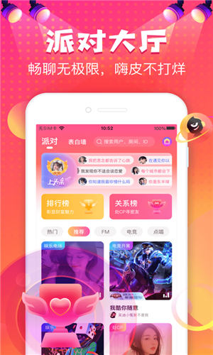 1、【语聊派对】K歌,扩列亲海量娱乐派对,随时随地多人语音连麦畅聊,相亲房、陪聊房、情侣房等个性房间,等你来参与。