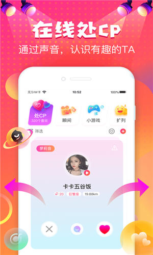 2、【互动聊天】语聊发消息、传图片,让你通过声音、照片找到那个匹配的Ta,一起开心地语音约会玩耍处CP!