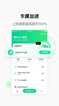 腾讯WiFi管家下载安装一款连接上网必备手机软件,腾讯WiFi管家下载安装为你提供上网、实时掌上公交、周边游等各种生活服务小助手。为你节省更多的流量让你每天都能正常上网,并且还会为你诊断上网的安全情况,为你免费上网,提供护航。并且拥有加速功能,让你告别网络延迟情况,喜欢的用户们现在就来这里点击免费下载吧。
