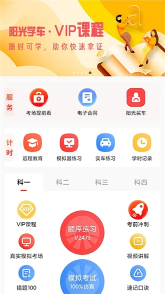 阳光学车app是一款相当厉害的手机学习软件,我们的主旨就是给全国各地的小伙伴带来最便利、最专业的学车教学,从科目一到科目四,绝对可以给你带来极大的帮助,不管是什么类型的驾照均可使用哦~阳光学车app除了会给大家带来最齐全的理论知识与资料库,还提供了线上预约的服务,大家可以完全按照自己的时间去预约学车,大大缩短了大家考驾照的时间呢!