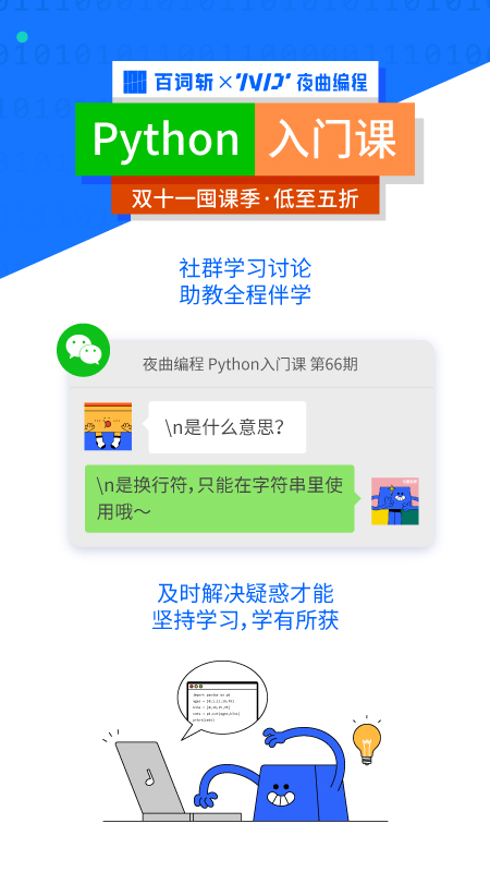 夜曲编程官方版是一款广受好评的的编程学习软件,这款软件再用在线学习的方式,拥有非常优质的Python课程等你来学习,拥有通俗易懂的课程内容,用户每天只需要花费20分钟的时间来学习就可以,零基础也可以轻松学习,更好的利用碎片时间来提升自己。夜曲编程官方版课程适用于大学生,求职者,职场人等,可以帮助用户更加高效的进行工作和学习,并且相对应薪资也会更高点,还可以选择成为程序员。夜曲编程官方版采用了双端学习的方式,手机电脑都是都可以轻松学习,并且配置的在线编译环境,轻松实战练习。