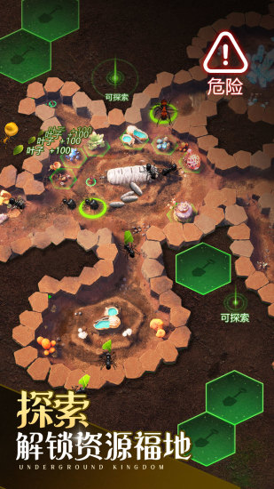 为为争夺资源,扩大势力,你必须组建一个强大的蚂蚁团队。 在一个强大的团队中, 除了很多高等级的士兵和蚂蚁,你还需要一个变异蚂蚁首领一特化蚂蚁, 可以通过孵化异化卵获得。在士兵和专业化蚂蚁的强力配合下,你的蚂蚁团队-定能碾压你的敌人。