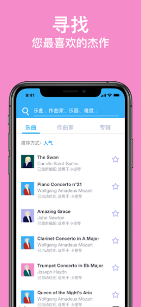 1、顶级伴奏:所有伴奏来自世界顶尖乐团和钢琴家,每一首伴奏都是高音质录音棚进行录制的立体声;