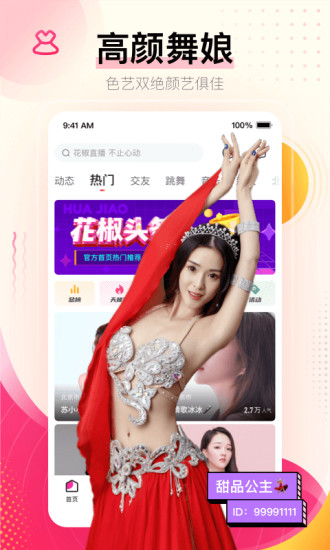 花椒直播ios版是一款影音视听软件。让你心动的直播一定就在花椒直播ios版,这里汇集了各路的高颜值的主播,有众多好玩的以及好看的直播都在这里。来这里可以参与直播互动、可以进行视频和语音来聊天和交友。即刻下载就能立马参与的。主播都有直播清单的,各种花样的直播会让你觉得多姿多彩的。在这个平台你也可以参与征友的,遇见令你心动的就赶紧连麦互动吧,还可以私信交友。那就让他们赶走你的阴霾和孤寂吧。这里的主播不仅有高颜值还多才多艺,会让你惊叹的。花椒直播ios版附近交友也不失为一种方式,那就邂逅那个属于你的ta吧。这里还可以听到声优的声音的,颠覆你对于声音的认知。那就赶紧点击这个软件下载吧。